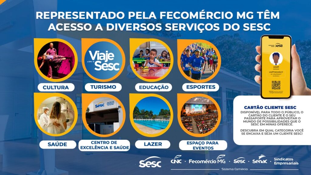 ✔️ Acesso aos serviços do SESC/SENAC (educação, lazer, turismo, cultura)